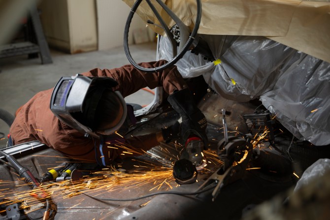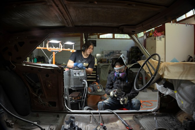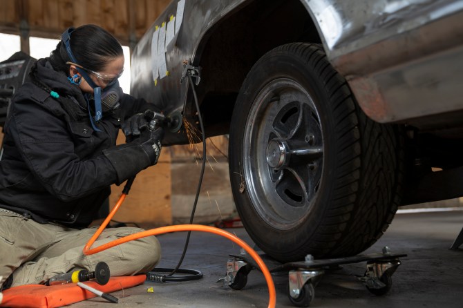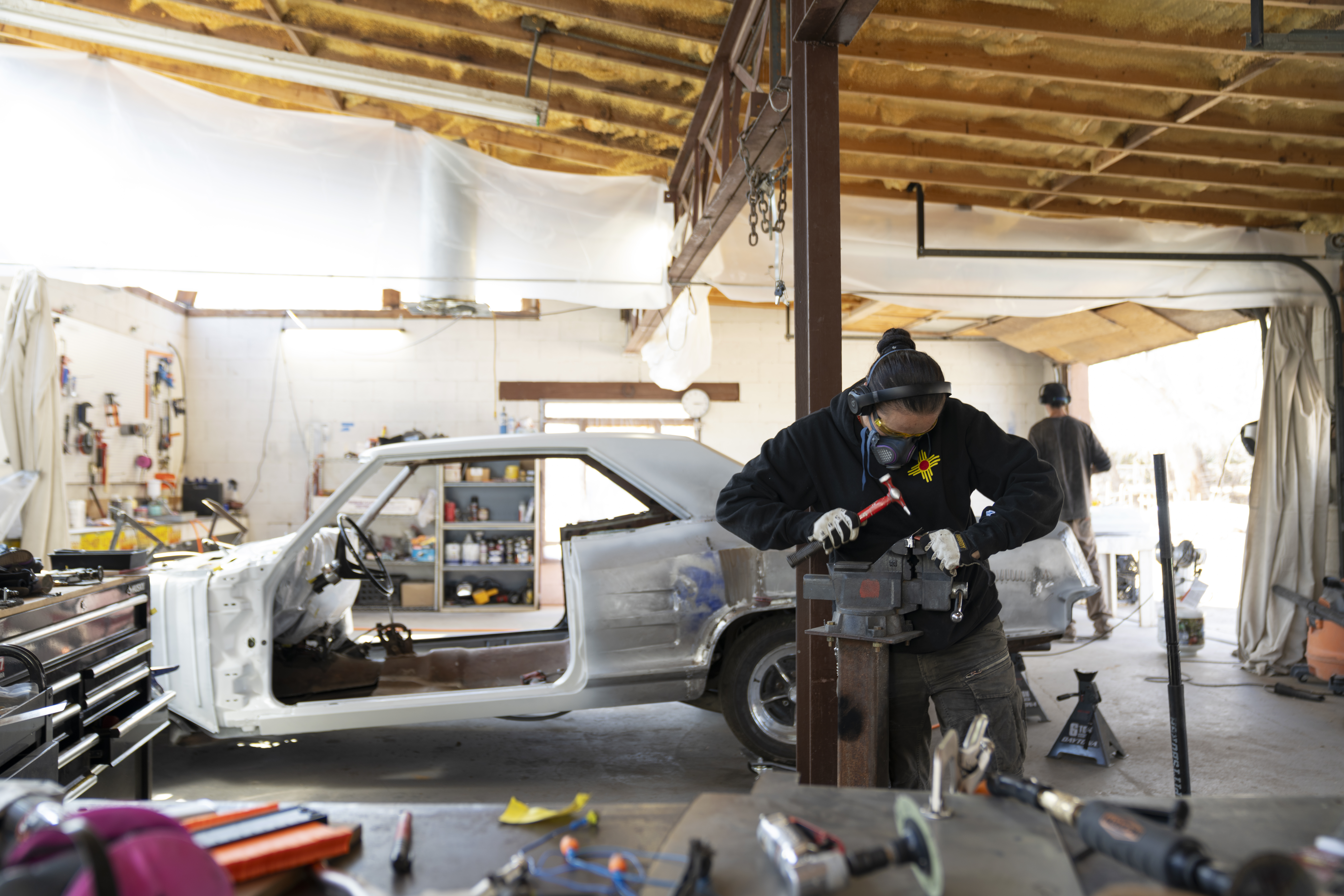 Rose B Simpson working on her 1964 Buick Riviera, Bosque. All photos in the Bosque series by Kate Russell. Courtesy of the Fine Arts Museums of San Francisco, Jessica Silverman, San Francisco and Jack Shainman, New York.