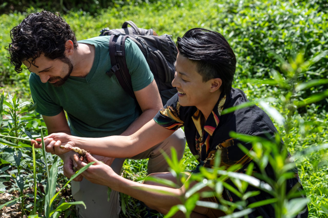 Melissa King and Andrés Ruzo forage at Huehue Ranch and connect deeper with the land. Photo by Ben Lowy © 2022
