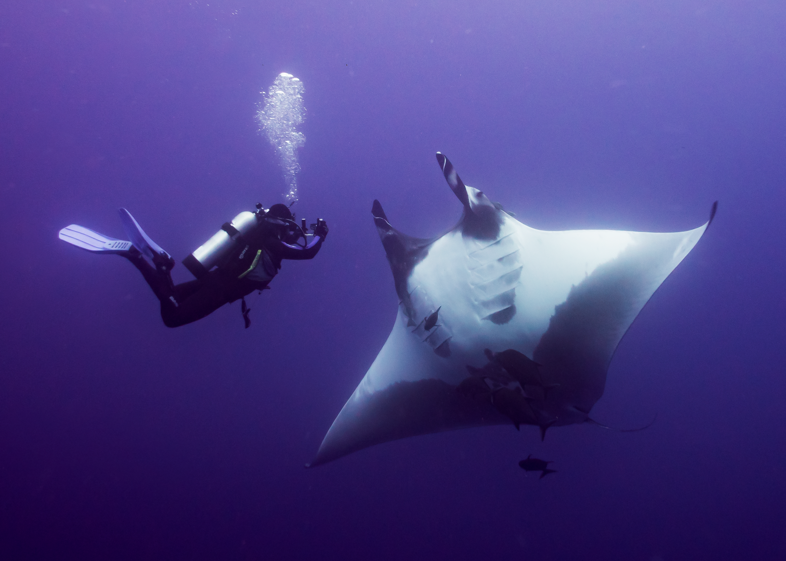 Adam Dorfman photographing a Giant Pacific Manta at Mexico’s Archipelago de Revillagigedo in 2018 . photo by Steve Peletz