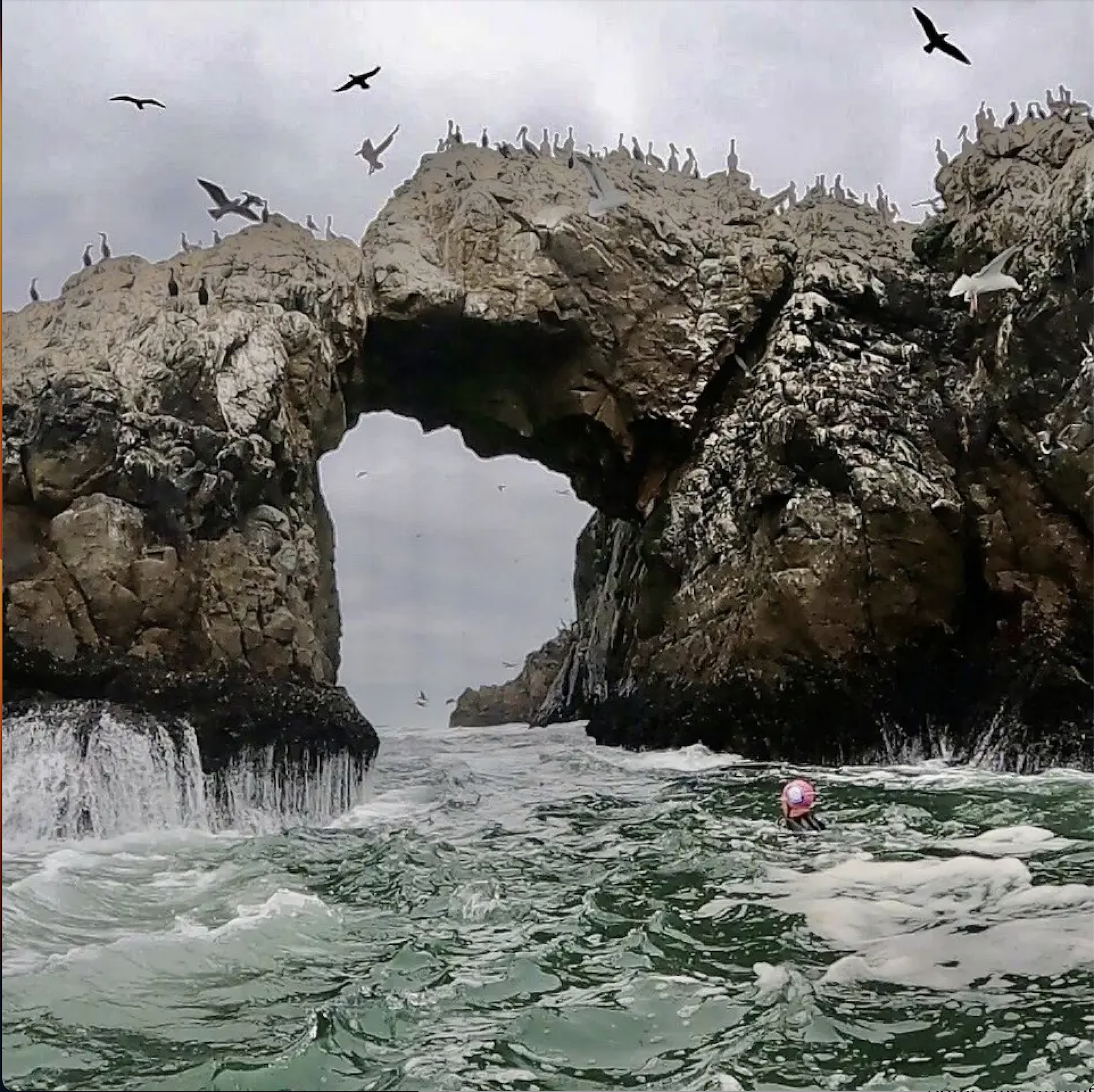 Bryan Hanson swims in front of Arch Rock near San Francisco’s Cliff House at Ocean Beach. Photo by Scott Witthoff.