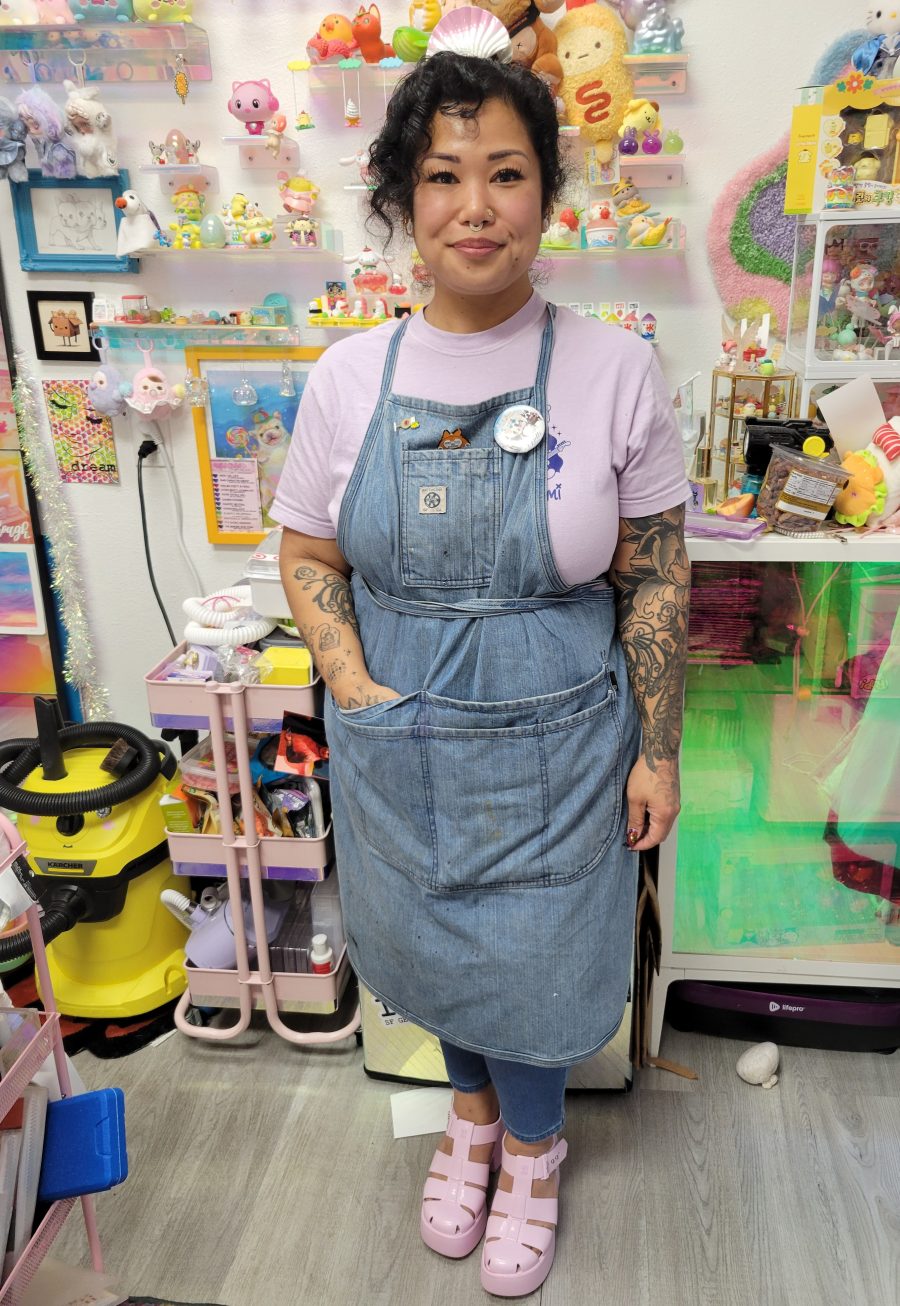 Nail artist Kristen Valdez-Doherty is a maximalist in terms of nail design, which is reflected in the kitschy, crowded décor of her Nails of Modern Art Clement Street studio. She’s surrounded by abstract splashes of bright turquoise, chartreuse, hot pink, shades of purple, along with gold and silver metallic accents. Labubu dolls share shelf space with other whimsical pop culture figurines – from Wednesday Addams to Japanese anime characters.