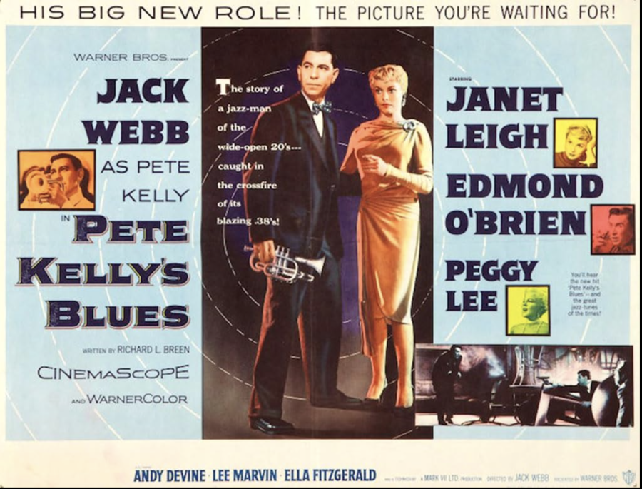 “Pete Kelly’s Blues was conceived by Jack Webb and grew out of his love of Jazz and was created in collaboration with writer, Richard L. Breen. Webb began his career as a late-night disc jockey playing Jazz records in San Francisco and spent a lot of time in Jazz clubs.” He brought it to radio in 1951, two years after Webb became a success with Dragnet on radio. The film came out in 1955 and a short-lived TV series aired in 1957.