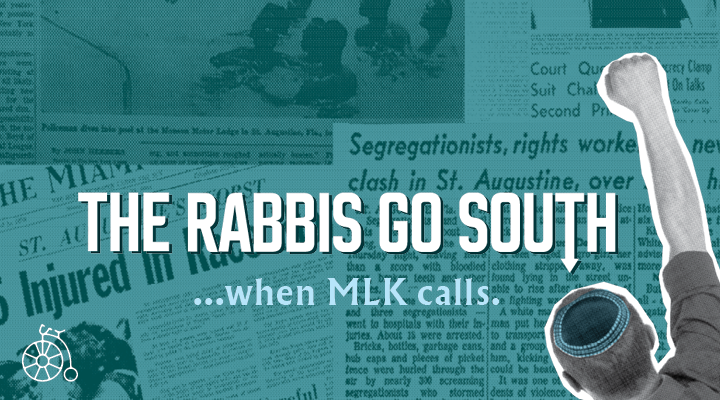 A seven-part podcast, The Rabbis Go South, produced and hosted by Amy Geller and me, has launched! It tells the story of 16 Reform rabbis answering the call of Martin Luther King, Jr. in 1964 to help desegregate St. Augustine, Florida. The rabbis were arrested and jailed, the largest incarceration to that time of rabbis in American history. A very compelling story. But like most of you, we’d never heard about this incident before we began.